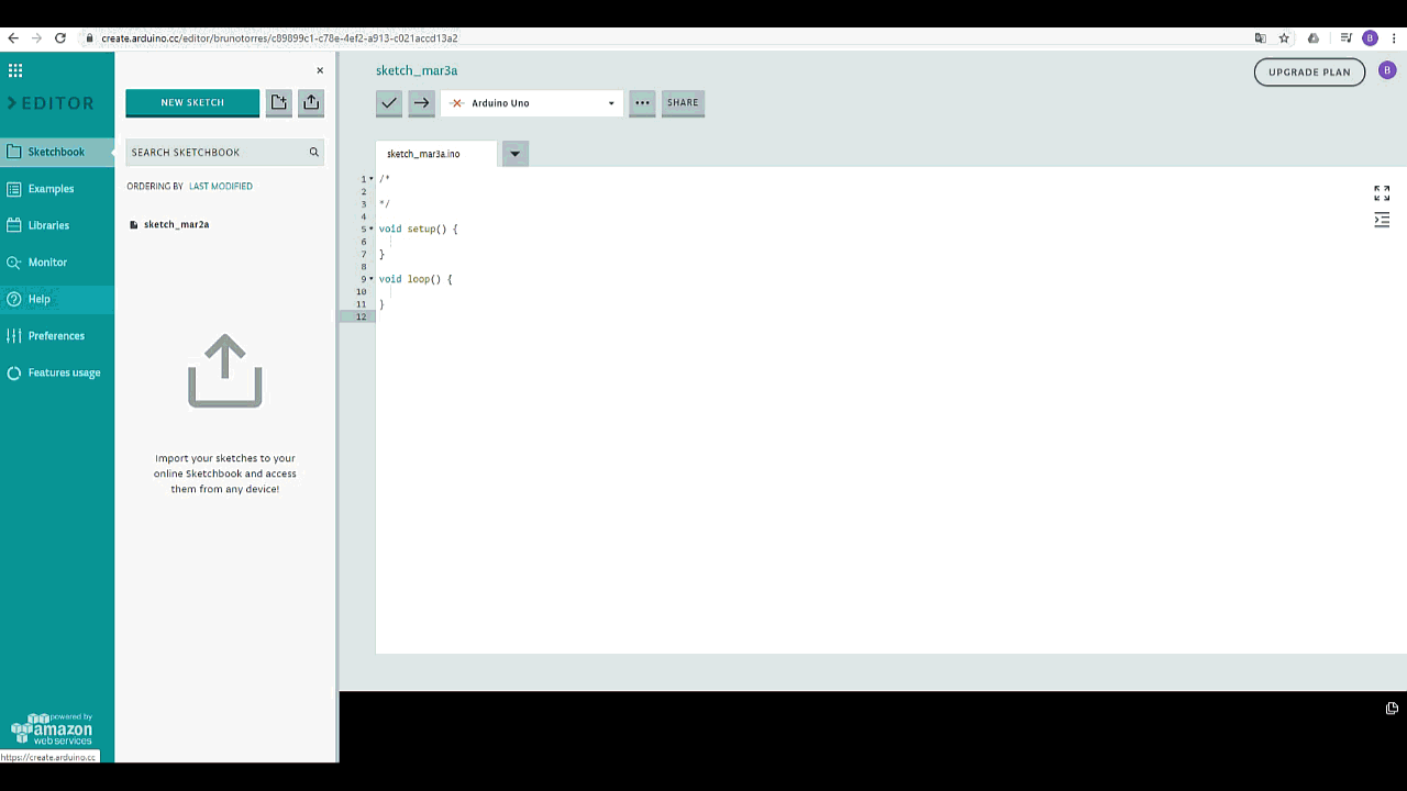 Ahora usaremos uno de los ejemplos del Arduino Web Editor para hacer una pequeña prueba y demostrar cómo se utiliza.