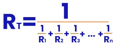RT = 1 / ( 1/R1 + 1/R2 + 1/R3 + 1/R4 )