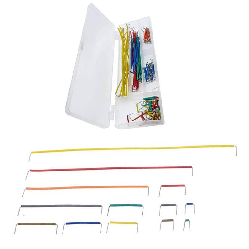 El kit de 140 alambres de tipo puente con 14 tamaños diferentes son ideales para facilitar la elaboración de circuitos en protoboard y puentear todo tipo de componentes, módulos y sensores. Es de gran ayuda a interconectar todo tipo de proyectos con Arduino, Raspberry Pi, NodeMCU y otros.
