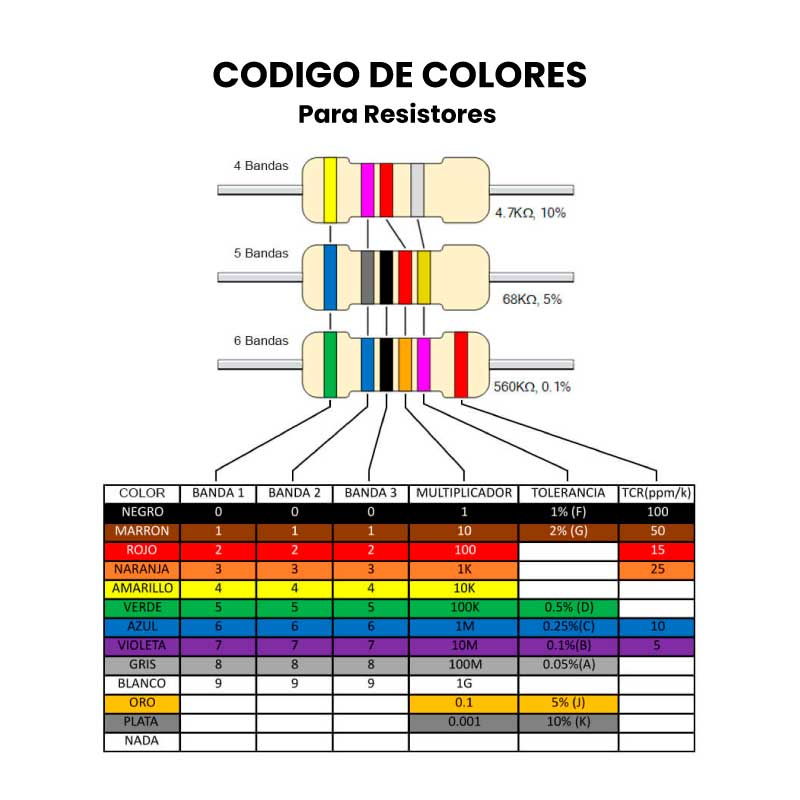 - Valores: Variados entre 10Ω – 1MΩ