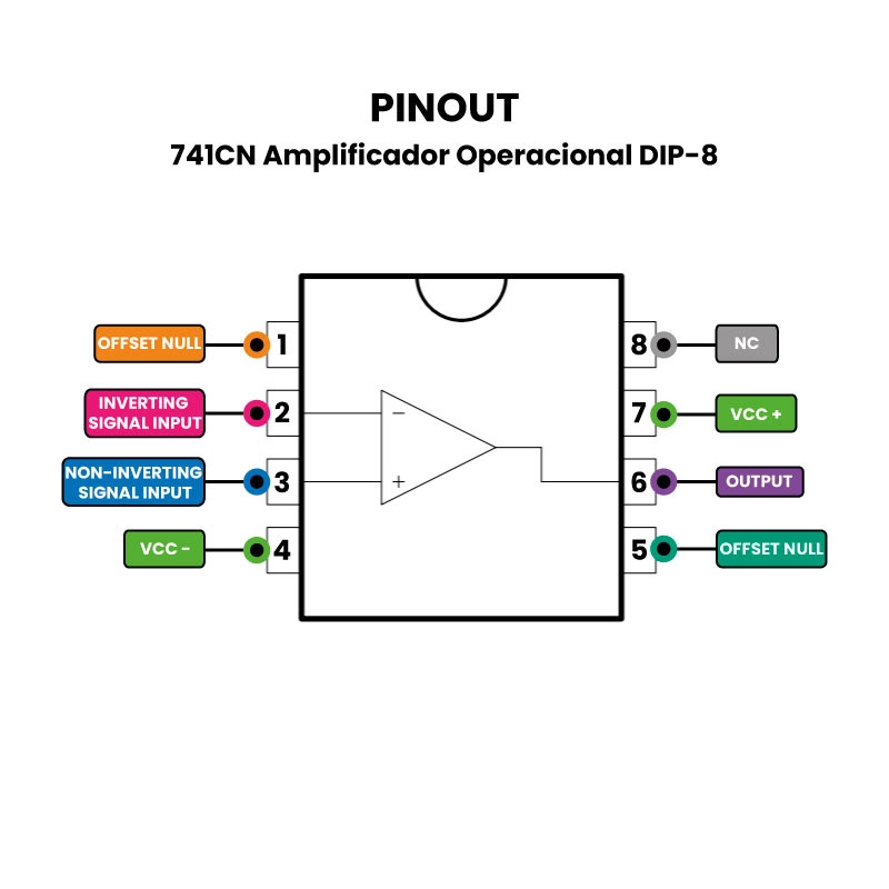 El Amplificador Operacional 741CN de Propósito General es ampliamente utilizado para el tratamiento de señales, tiene protección de sobrecarga en la entrada y salida, sin enclavamiento cuando se supera el rango de modo común, así como libertad de oscilaciones.
