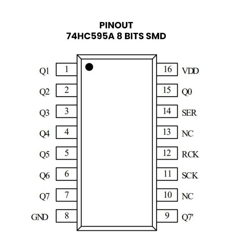 74HC164MTR Registro 8 bits, encuentra más tipos de Compuertas Aquí.
