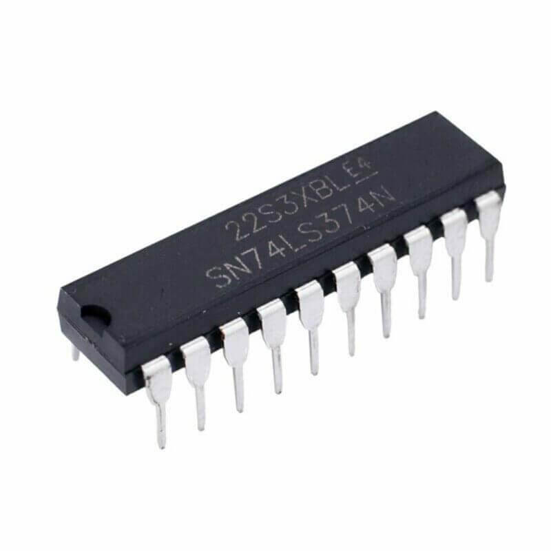 El 74LS374 Flip Flop Tipo D Triggered es un circuito integrado que contiene 8 flip-flops tipo D triggered (activado) de 1 bit cada uno. Un flip-flop tipo D es un tipo de circuito lógico secuencial que puede almacenar y mantener un bit de información en su estado de salida hasta que se cambie el valor en la entrada.