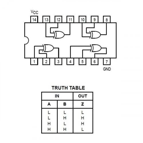 La Compuerta XOR o SN74LS86N es un circuito integrado que incorpora cuatro compuertas OR exclusivas con dos entradas. Realizan las funciones booleanas en lógica positiva. Una aplicación común es como un elemento complemento/verdadero.