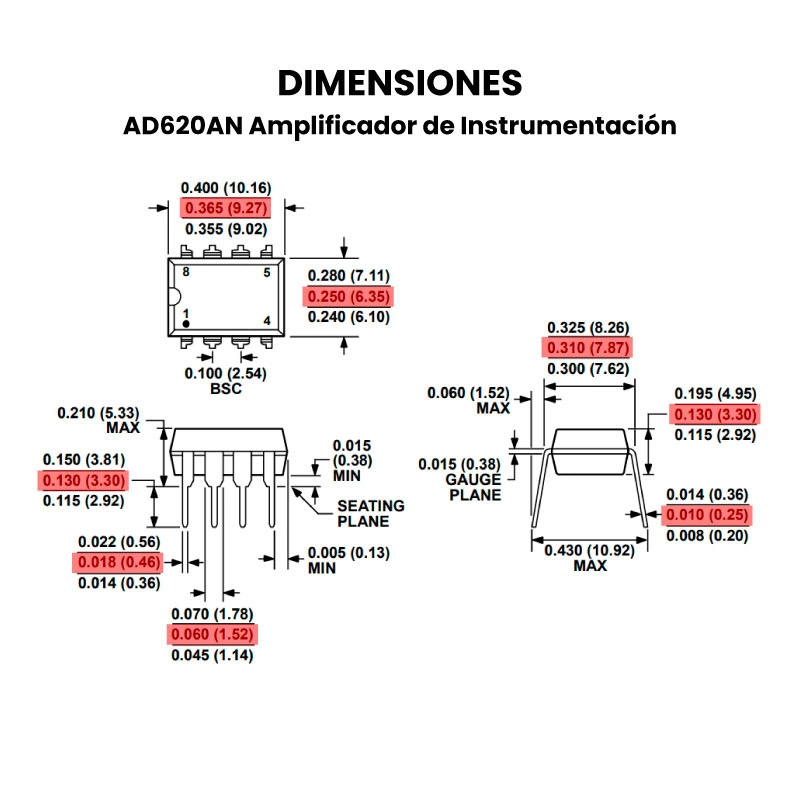 El AD620AN tiene un encapsulado DIP-8 el cual podrás integrar rápidamente a un protoboard y comenzar a realizar tus proyectos o de igual manera contamos con un Módulo AD620 el cual es más fácil de utilizar.