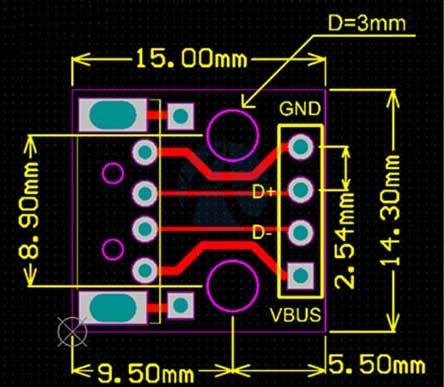 - Número de Pines de salida: 4 (VBUS, D-, D+, GND).
