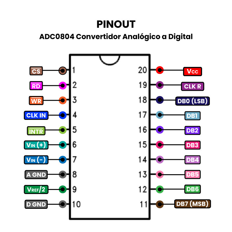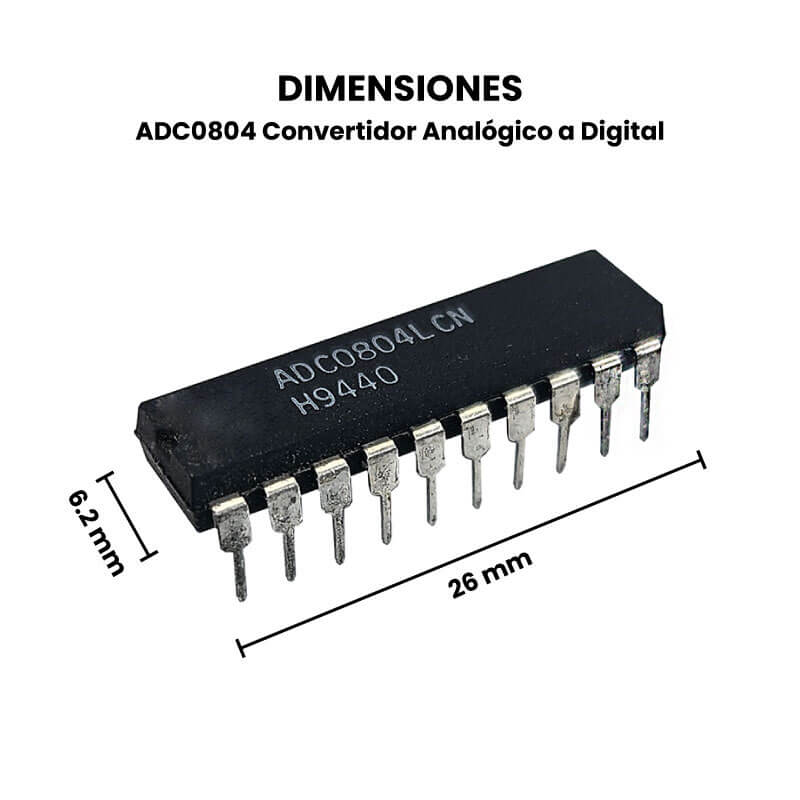 El ADC0804 Convertidor es ideal para sistemas de adquisición de datos, donde se necesita convertir señales de sensores analógicos a un formato digital para su procesamiento por microcontroladores y sistemas embebidos. Además, se emplea en proyectos de monitoreo ambiental, instrumentación y control industrial, donde se requiere medir parámetros como temperatura, presión, luz y otros.