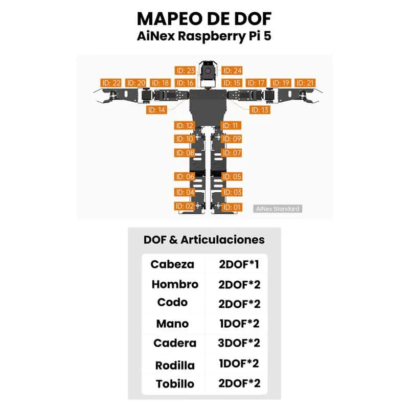- Servos: 22 grados de libertad.