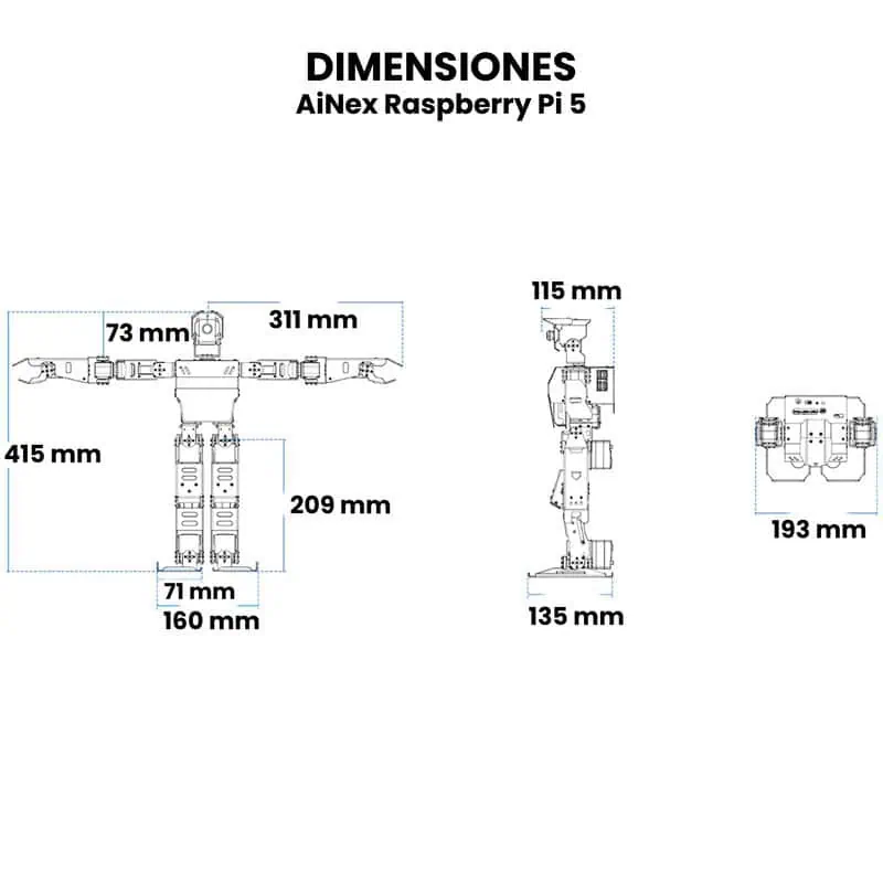 - AiNex: 19.3 cm x 13.5 cm x 41.5 cm.