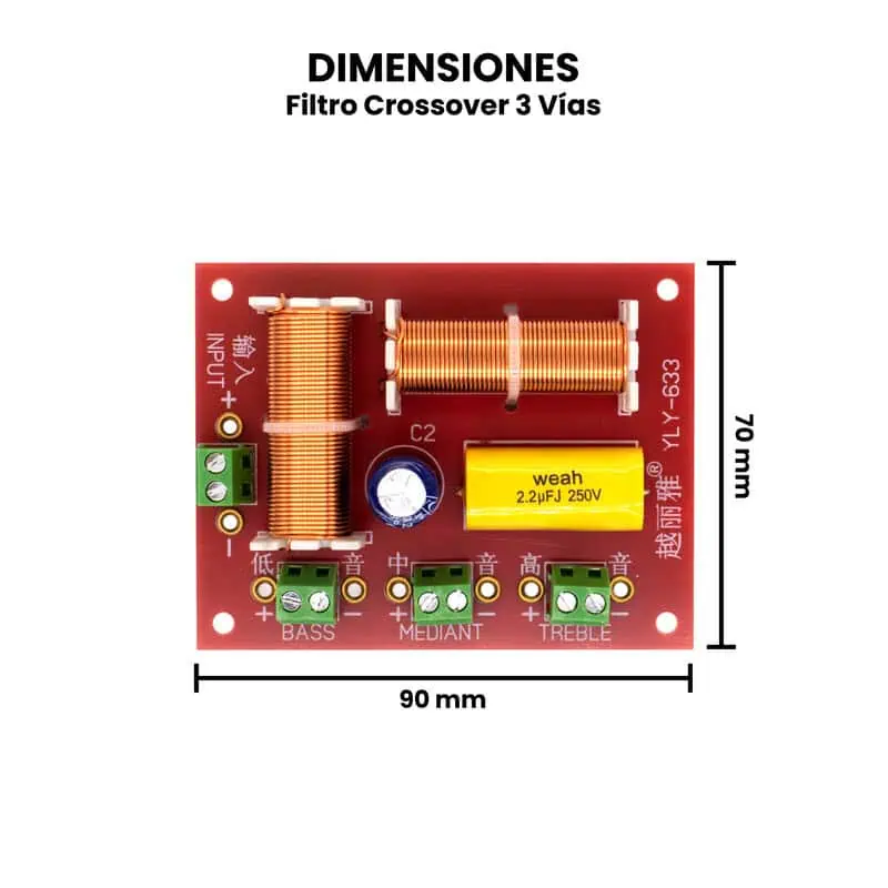 El Filtro Crossover de 3 y 2 vías se utiliza principalmente en sistemas de audio, tanto domésticos como profesionales, para optimizar la distribución de frecuencias entre los distintos altavoces y lograr una reproducción sonora más limpia y equilibrada. Sus aplicaciones incluyen bafles pasivos, cajas acústicas, sistemas de sonido para autos, equipos de música DIY y proyectos de audio Hi-Fi o PA. También es común en prototipos de ingeniería de sonido y experimentos acústicos educativos.