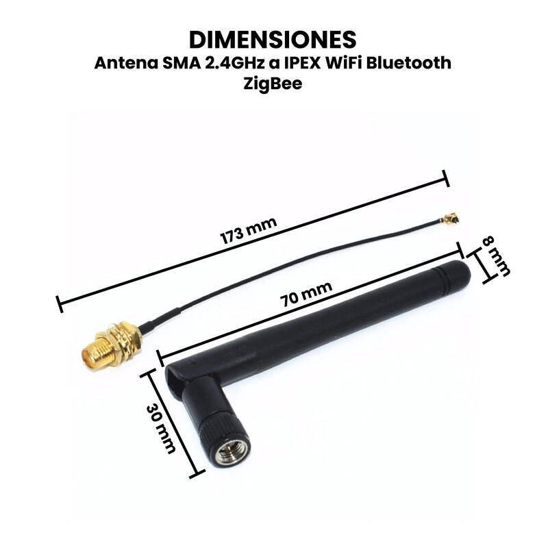 - Cable extensión: SMA Hembra a UFL (IPEX).