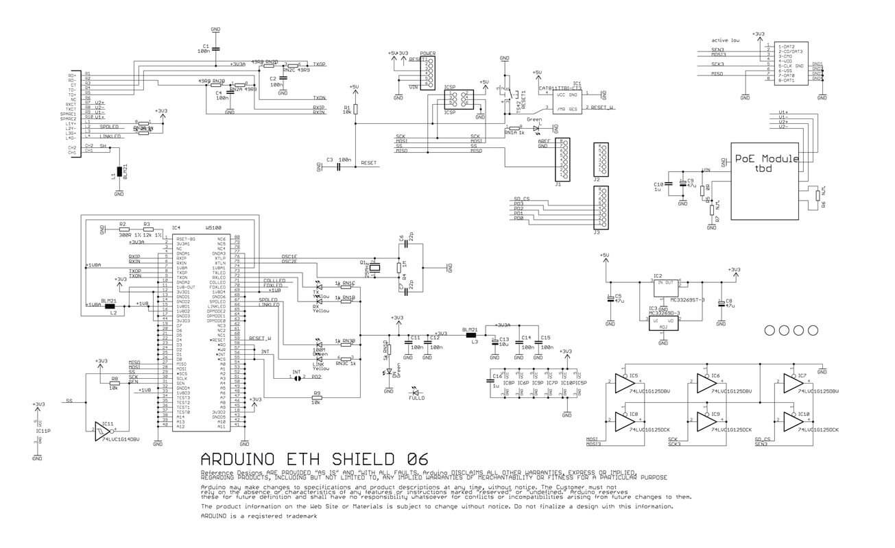 Debido a que el W5100 y la tarjeta SD comparten el mismo bus SPI solo uno podrá estar activo a la vez. Si estás usando ambos periféricos en tu programa, debes tomar en cuenta esto. Si no estás empleando alguno de estos periféricos debes “deseleccionarlo” explícitamente. Para deshabilitar la tarjeta SD, configura el pin 4 como salida y escríbele HIGH. Para deshabilitar el W5100 configura el pin 10 como una salida en HIGH.