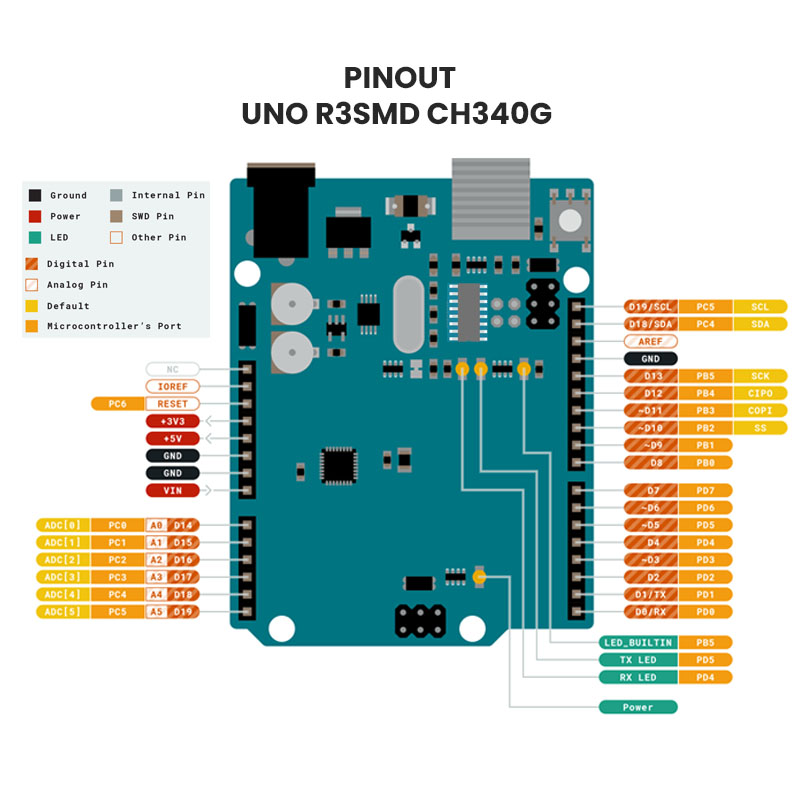 UNO R3 CH340G SMD con cable compatible con Arduino