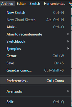 Puedes intentar cargar el Sketch sin realizar verificación, para ello dirígete a la pestaña de archivo y a clic en preferencias como se muestra en la siguiente imagen: