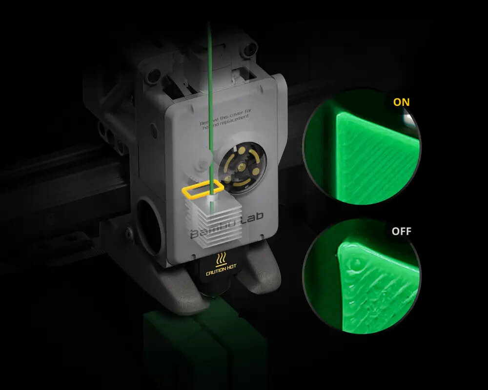 Calibración automática totalEl A1 mini realiza varias calibraciones de forma automática. Ajusta cuidadosamente la altura Z, el nivel de la base, la vibración y la presión de la boquilla para cada impresión de manera automática.