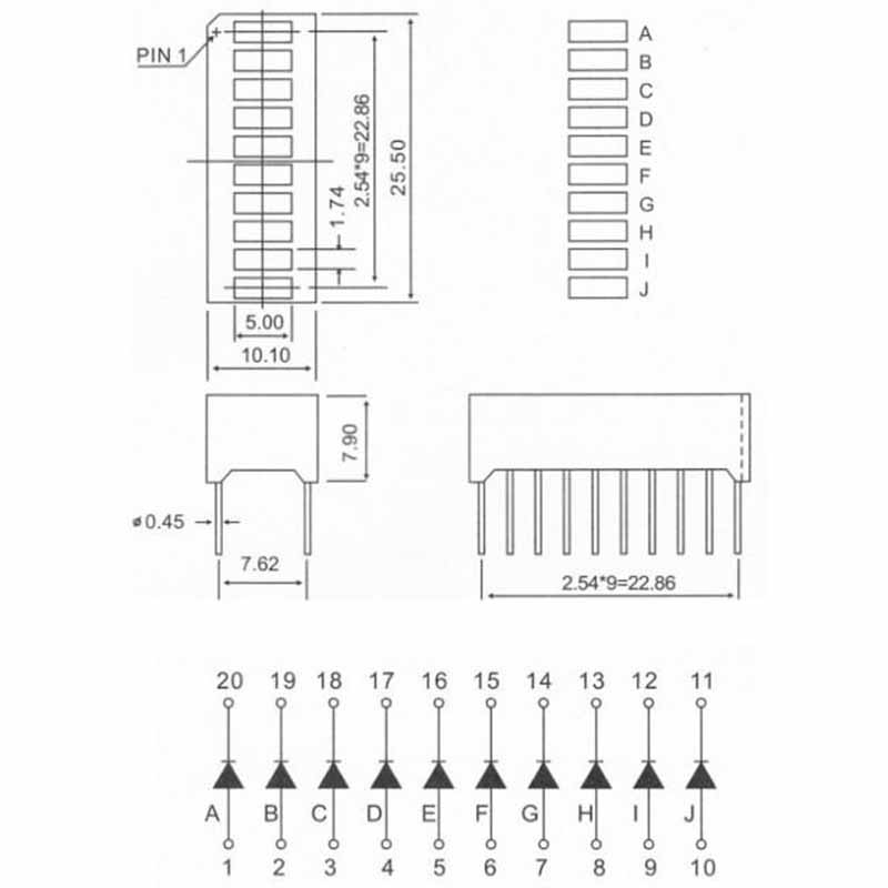 En una barra o matriz de led que cuenta con 10 segmentos, cada led o segmento viene integrado a la barra de forma individual. Estas barras de led son pequeñas y fácil de utilizar, puede utilizarse en diversos prototipos y practicas de electrónica ya que puede conectarse a un protoboard y realizar distintos circuitos, de igual forma pueden ser implementados en productos terminados de electrónica. Algunas de sus aplicaciones son las siguientes: