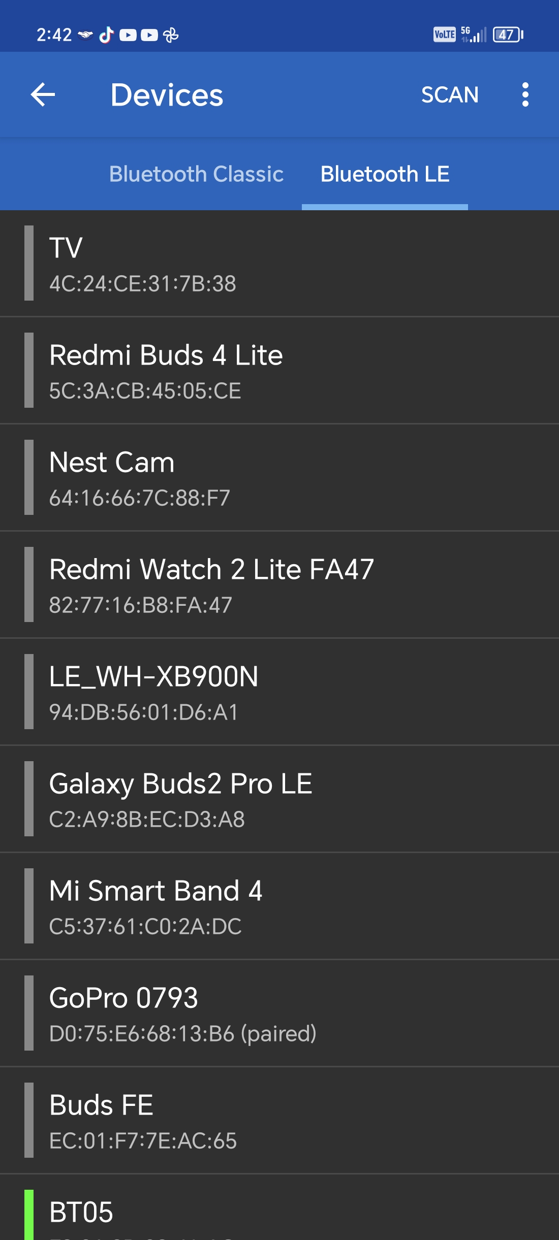 - Selecciona la opción para conectar a un dispositivo Bluetooth LE y Scanea.