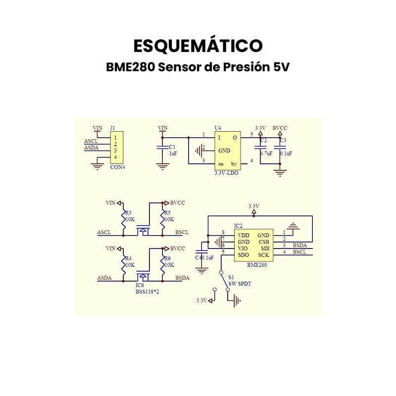 BME280 Sensor es un pequeño módulo de presión atmosférica de bajo consumo, permite detectar presión, temperatura, humedad. Este sensor cuenta con 4 pines para facilitar la conexión con MCUs o placas de desarrollo de Arduino y más, tiene interfaz de comunicación por I2C. El BME280 Sensor de Presión es ideal para detectar temperatura, humedad y presión barométrica. Ideal para monitoreo de clima, Internet de las Cosas, monitor de salud/fitness, automatización del hogar o Domótica y Aire acondicionado.