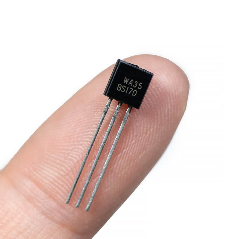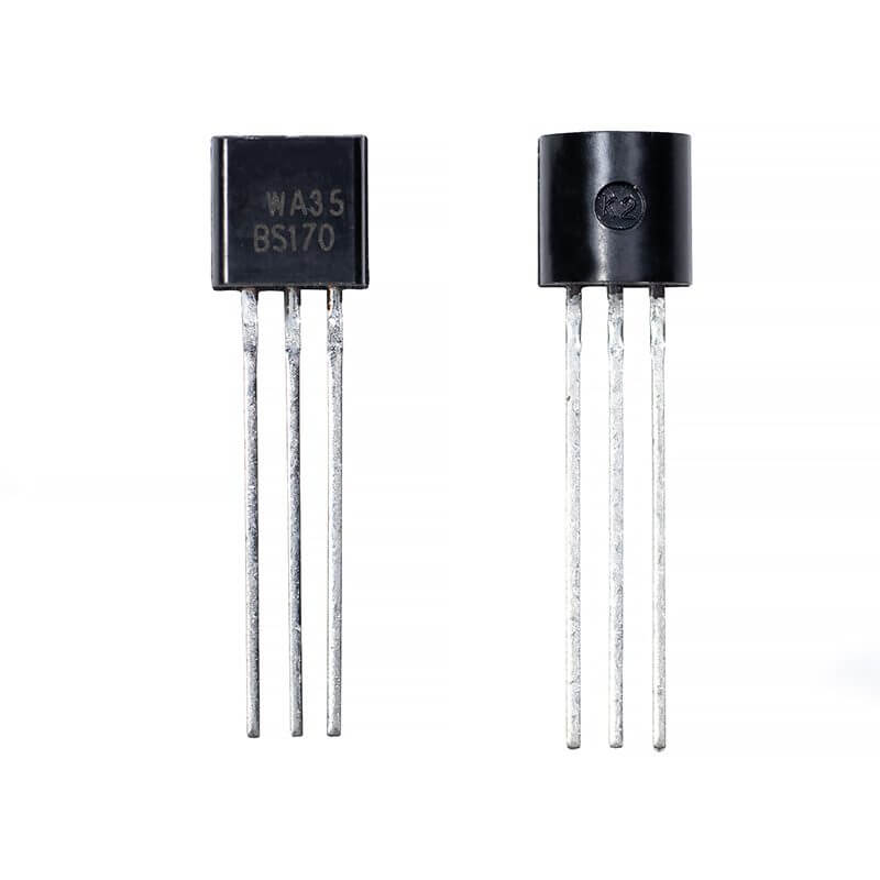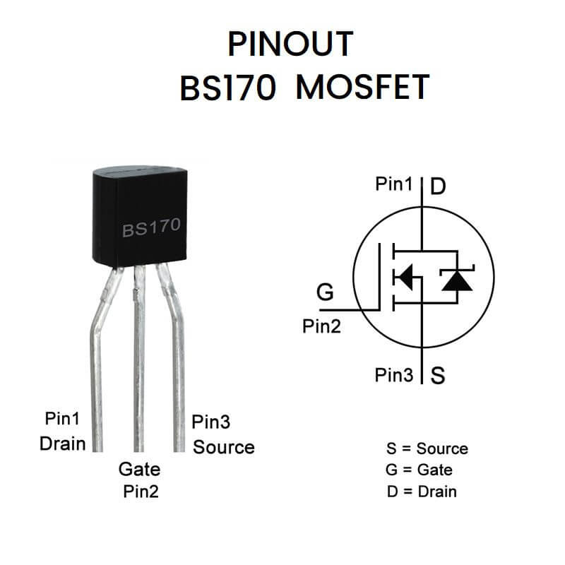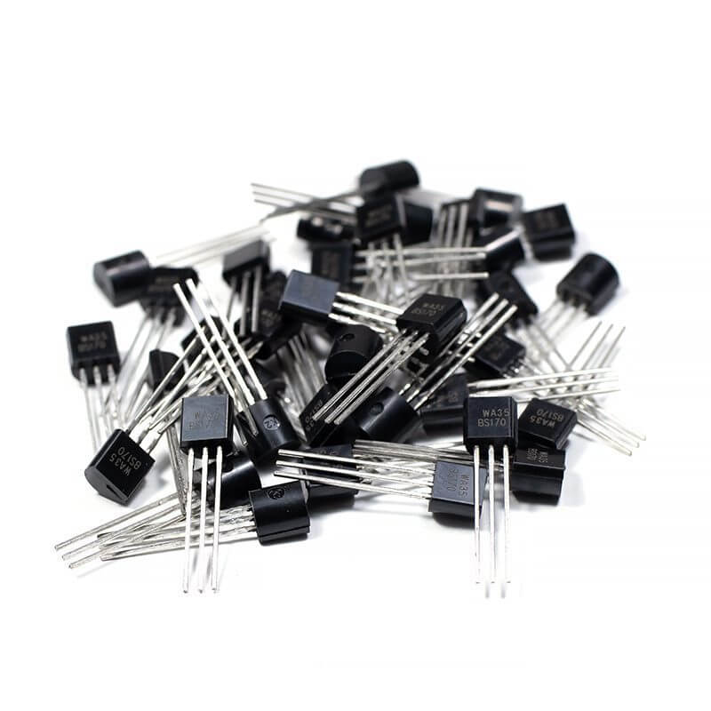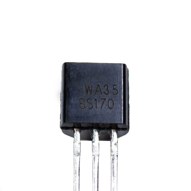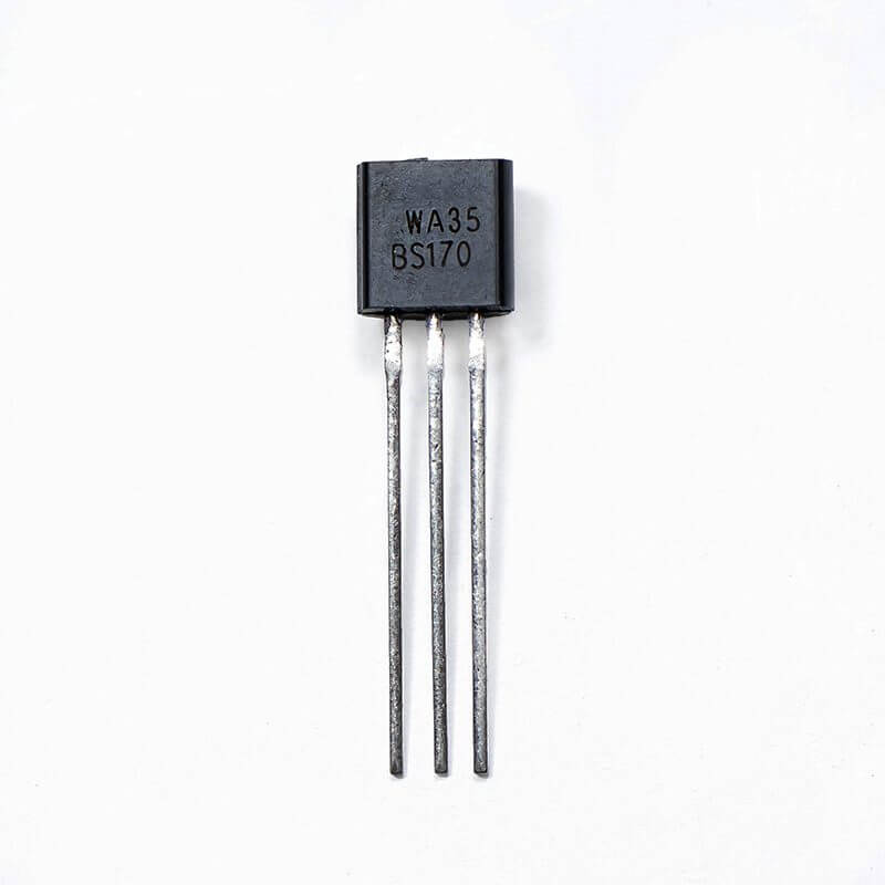 El BS170 es un transistor de efecto de campo canal N MOSFET , 60 V, 500 mA, 1.2 ohm, TO-92, teniendo alta capacidad a corriente de saturación y funcionando como interruptor de señal pequeña controlado por voltaje. El BS170 es útil para el control de servomotores pequeños, controladores de compuerta MOSFET de potencia y otras aplicaciones de conmutación.