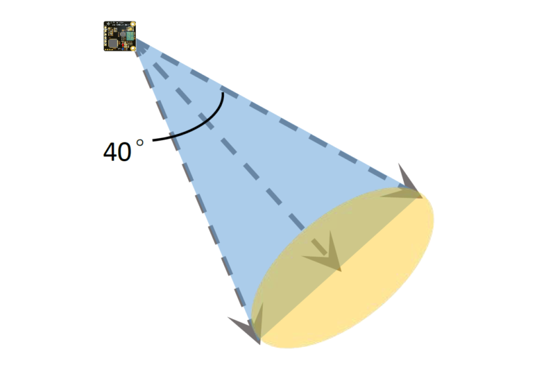 El alcance de cobertura del haz del radar se muestra en la figura siguiente. El radar cubre un área estereoscópica en forma de abanico con un ángulo horizontal y un ángulo de inclinación de 40°.
