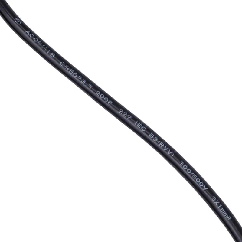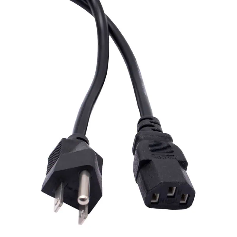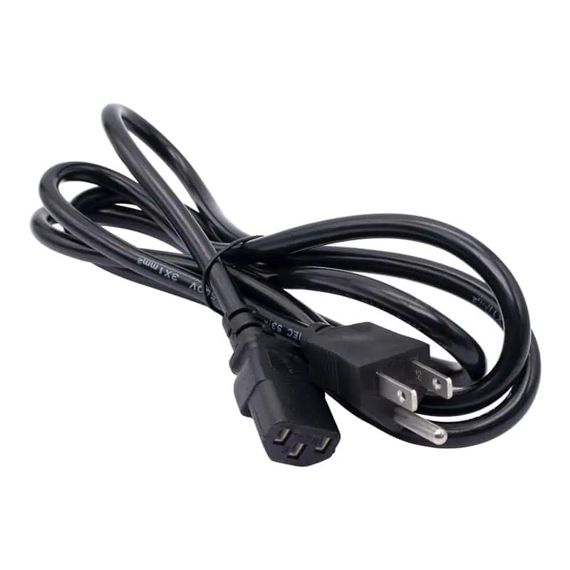 Un cable de alimentación Universal de AC, esta diseñado para conectar dispositivos electrónicos directamente a la toma de corriente de la pared. Transmite la energía eléctrica desde el enchufe doméstico hasta la fuente de poder del dispositivo. Es un cable de tres conductores que incluye fase, neutro y una conexión física a tierra para protección contra descargas.