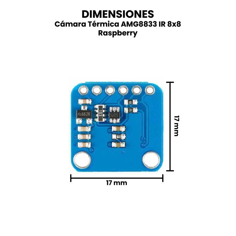 La Cámara Térmica AMG8833 IR 8×8 es un sensor de imagen térmica desarrollado por Panasonic que permite detectar temperaturas en un rango amplio y representarlas en una matriz de 64 píxeles (8×8). Su funcionamiento se basa en un arreglo de sensores infrarrojos que captan la radiación emitida por los objetos, transformándola en datos digitales de temperatura. Estos datos pueden visualizarse en forma de mapa de calor, donde cada píxel representa un valor térmico distinto. Este sensor es muy práctico y compacto, cuenta con 6 pines para soldar header macho (incluidos).