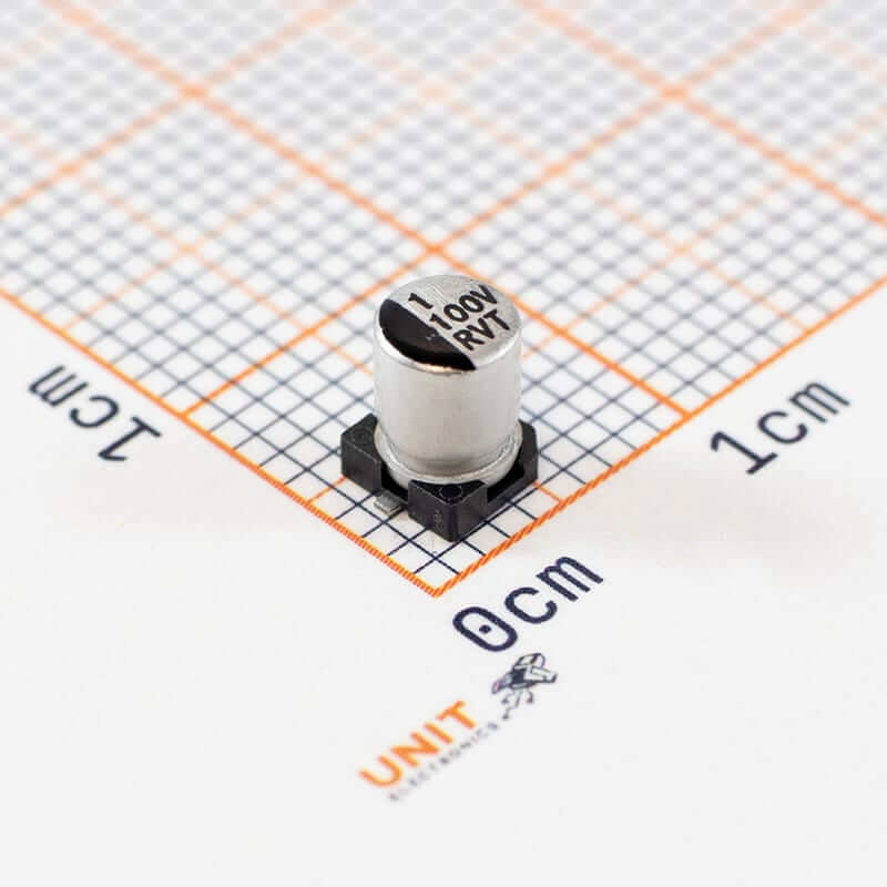 Capacitor Electrolítico 1uF 100V SMD RVT2A1R0M0405, encuentra más capacitores SMD Aquí.