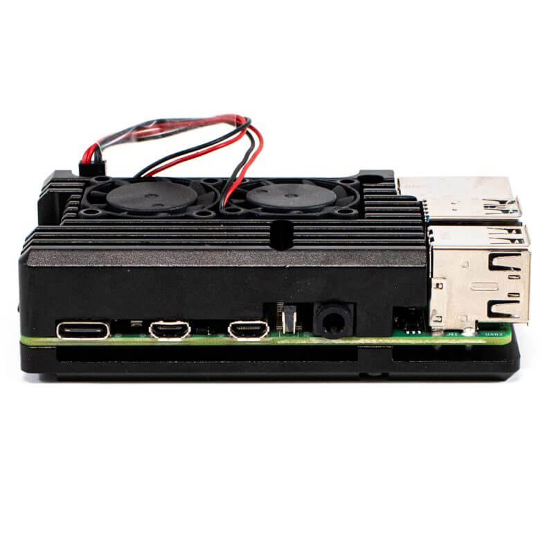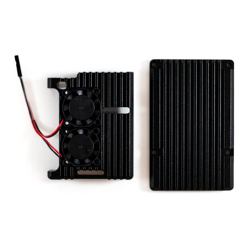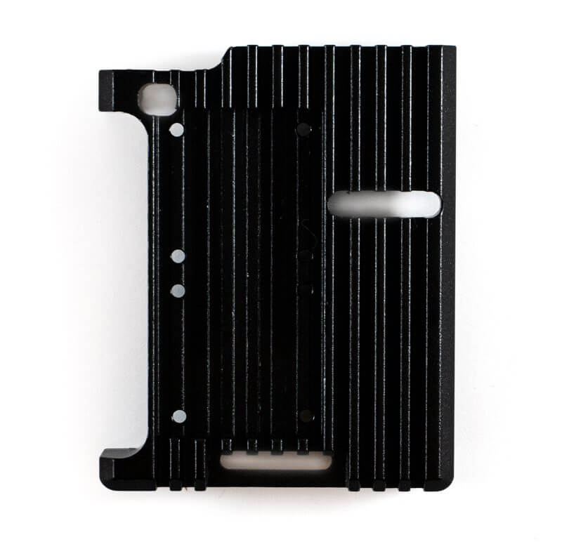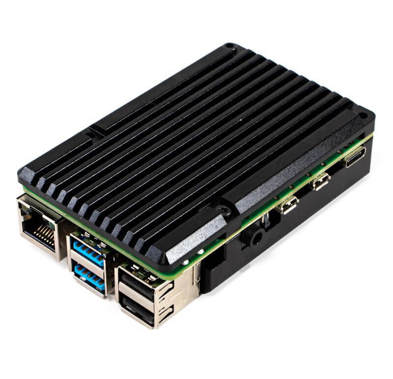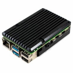 Carcasa de aluminio compacta y resistente de color negro, diseñada especialmente para Tarjeta de desarrollo Raspberry Pi 4B. Es una carcasa metálica reforzada y ultradelgada, el aluminio tiene excelentes propiedades de conductividad térmica, por lo que proporciona refrigeración pasiva para la Raspberry Pi, ayudando a que trabaje por periodos largos de tiempo sin tener problemas de sobrecalentamiento.