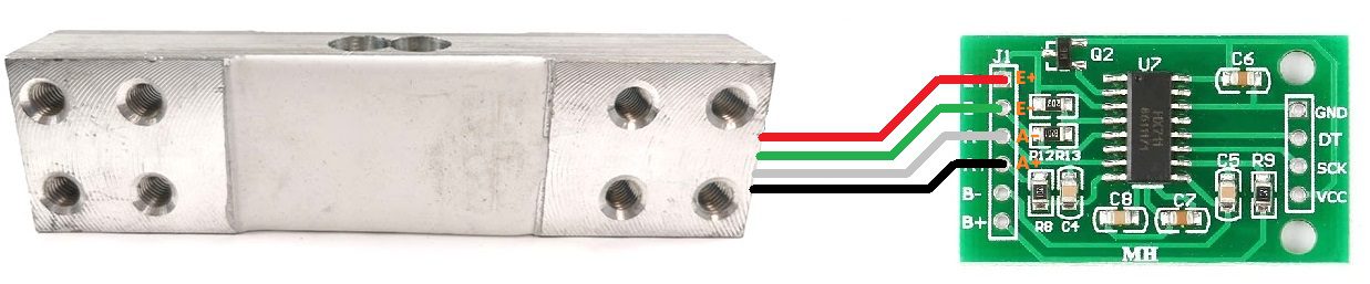 La celda tiene 4 cables con color Negro, Rojo, Verde y Blanco, para conectar la celda al módulo HX711, por convención suele ser la siguiente referencia de conexión: