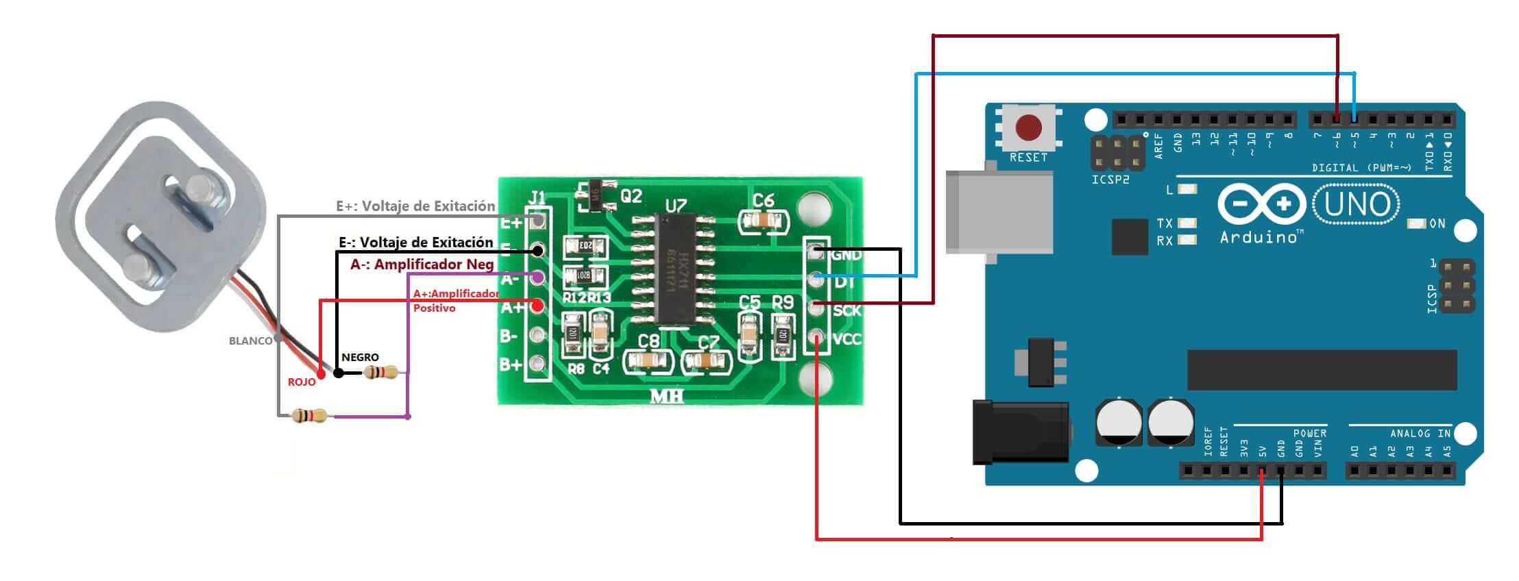 | Cable del sensor | Función | Conectar a HX711 |