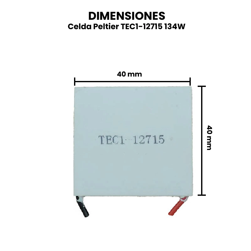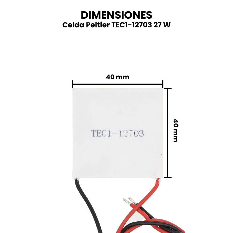 - Las celdas Peltier tienen dos cables: rojo (positivo) y negro (negativo).