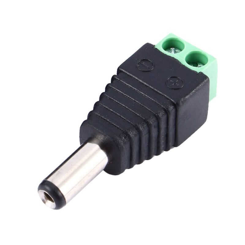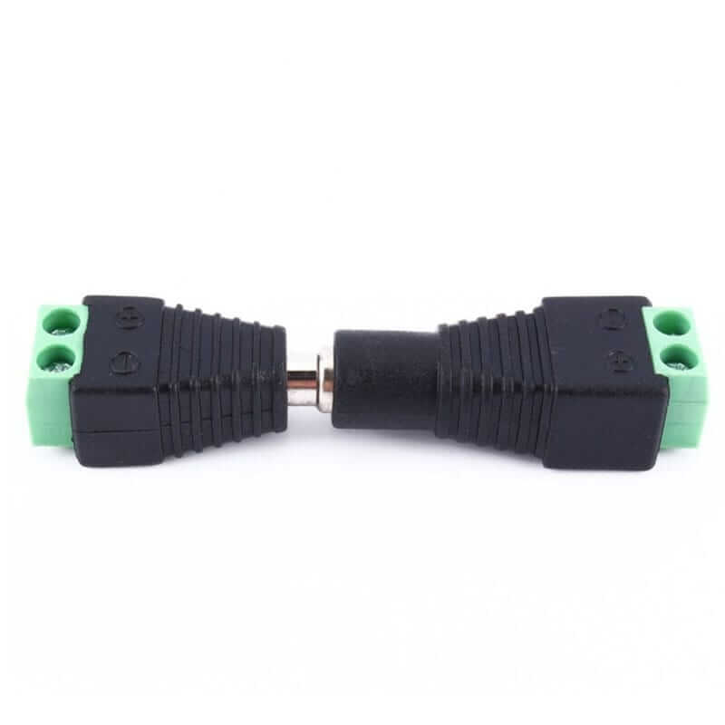Este Par Conector Plug Jack Macho Hembra es útil para configurar un LED de voltaje bajo o una cámara CCTV sin utilizar soldadura o algún tipo de cinta aislante.