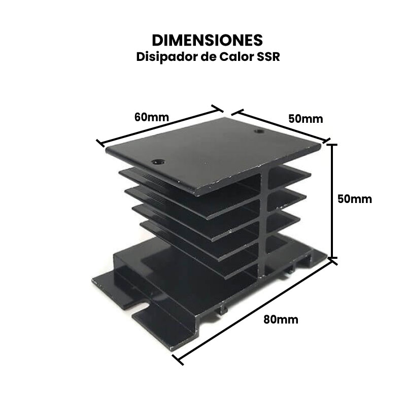 El Disipador de Calor SSR es un perfil de aluminio que se utiliza para bajar la temperatura, esta diseñado para los relevadores SSR-40. Este disipador es monofásico, cuenta con dos barrenos de métrica M4 para fijar los relevadores de estado sólido. El disipador es compatible con los siguientes relés: