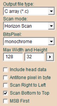 - Cargar la imagen que se requiere desplegar en el programa Image2Lcd v2.9 y colocar la siguiente configuración de salida: