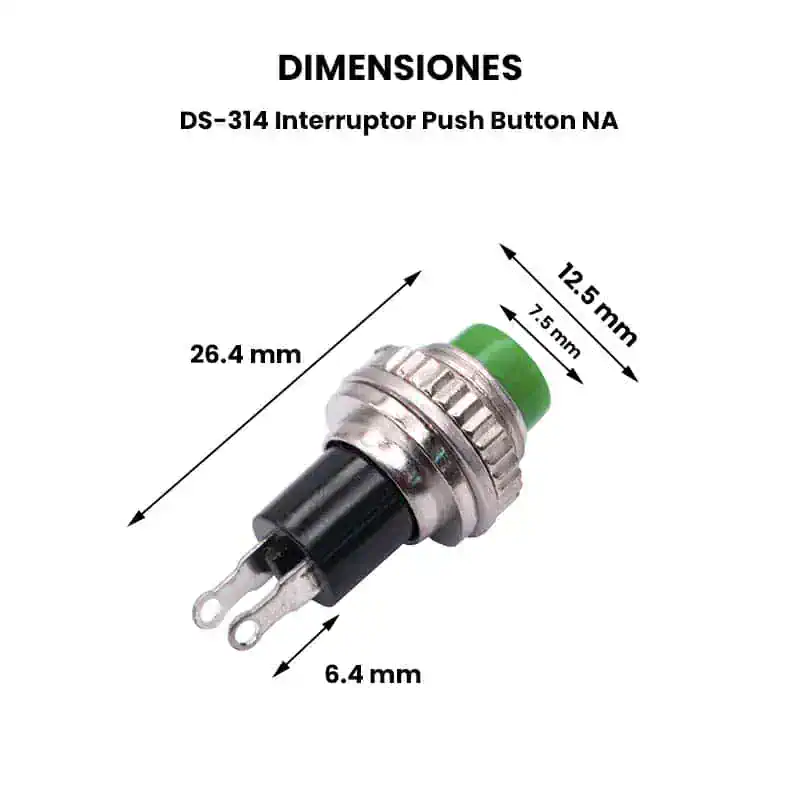 El interruptor DS-314 es un pulsador momentáneo de montaje en panel de 10 mm, diseñado para cerrar un circuito eléctrico solo mientras se mantiene presionado. Es ideal para aplicaciones de control, timbres, botones de reset o señalización, con diseño compacto y de acción rápida.