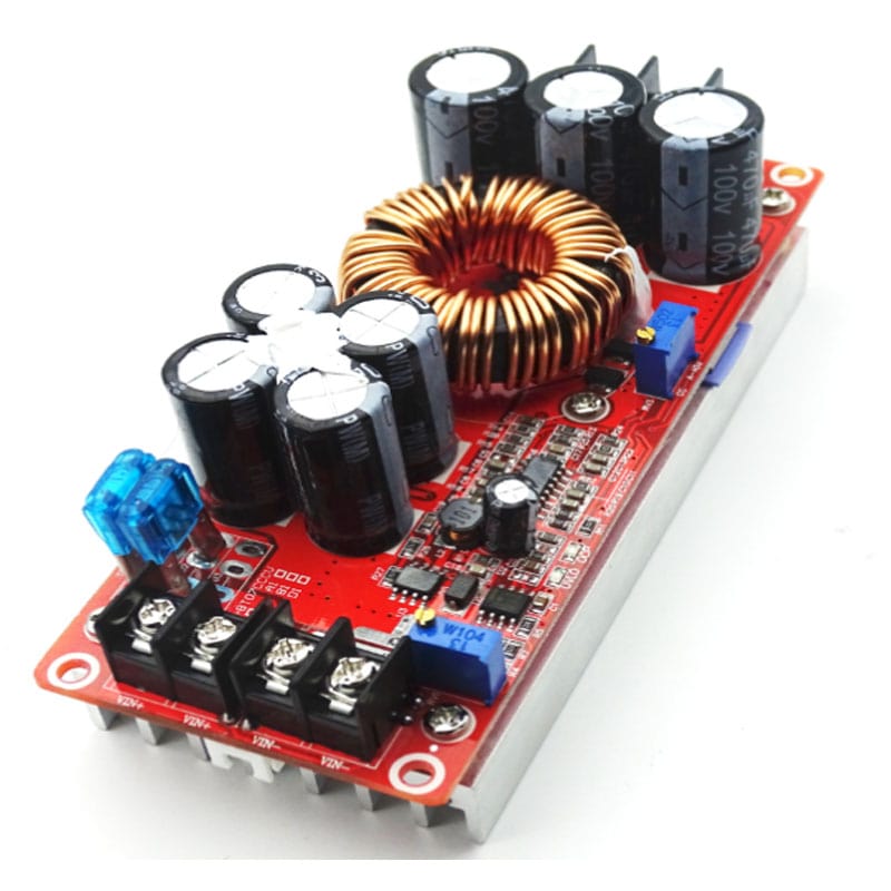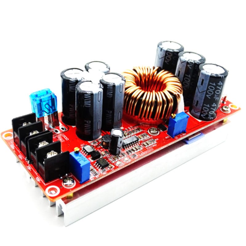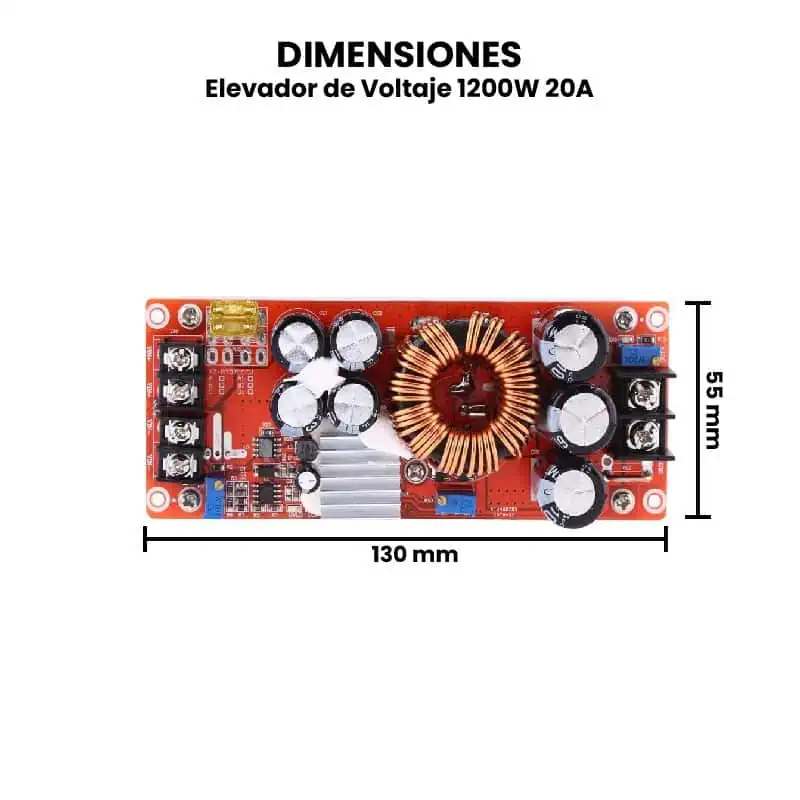 El elevador de voltaje de 1200W 20A, también conocido como boost converter o convertidor DC-DC step-up, es un módulo electrónico capaz de aumentar la tensión de entrada (por ejemplo, de 10–60V DC) hasta un voltaje de salida más alto ajustable (por ejemplo, 12–83V DC), manteniendo una corriente de salida de hasta 20 amperes y una potencia máxima de 1200 vatios. Funciona mediante el principio de conmutación a alta frecuencia con inductores y transistores MOSFET, que almacenan y liberan energía para elevar la tensión. El módulo incluye un potenciómetro para ajustar el voltaje de salida deseado, y muchos modelos integran ventiladores o disipadores para evitar el sobrecalentamiento.