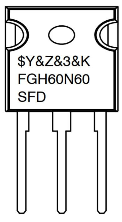 FGH60N60SFD es un transistor bipolar de puerta aislada (conocido por la sigla IGBT, del inglés Insulated Gate Bipolar Transistor), es un dispositivo semiconductor que posee características de señales de efecto de campo con la capacidad de alta corriente y bajo voltaje de saturación. Este transistor cuenta con un encapsulado de TO-247 de 3 pines, soporta un voltaje VCEO colector-emisor de hasta 600V.