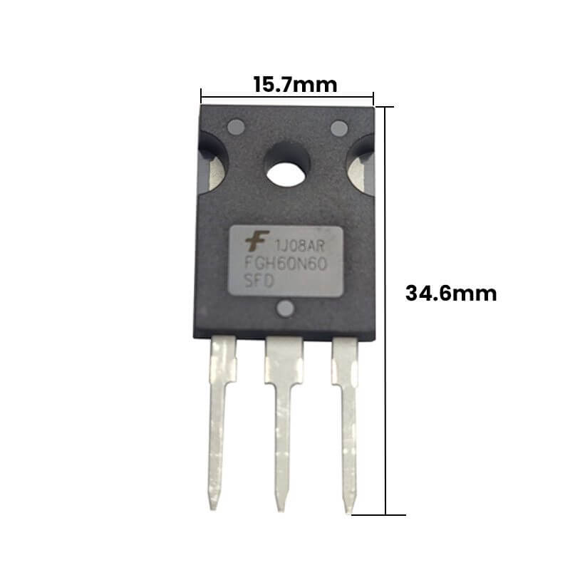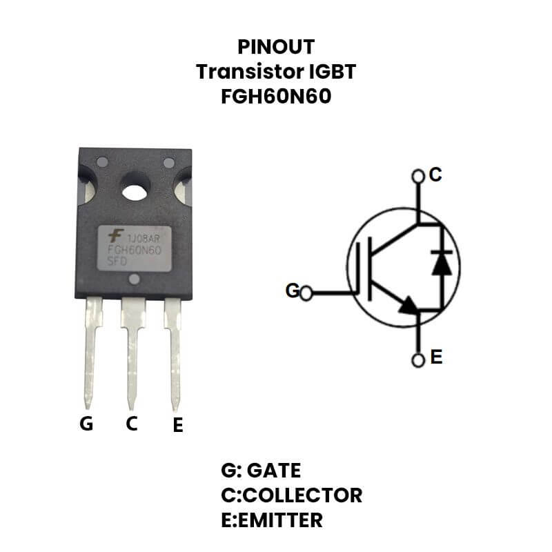 FGH60N60SFD es un transistor bipolar de puerta aislada (conocido por la sigla IGBT, del inglés Insulated Gate Bipolar Transistor), es un dispositivo semiconductor que posee características de señales de efecto de campo con la capacidad de alta corriente y bajo voltaje de saturación. Este transistor cuenta con un encapsulado de TO-247 de 3 pines, soporta un voltaje VCEO colector-emisor de hasta 600V.