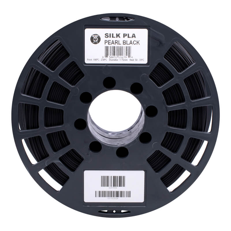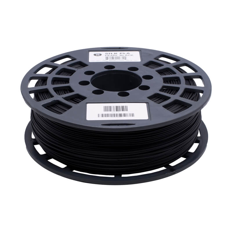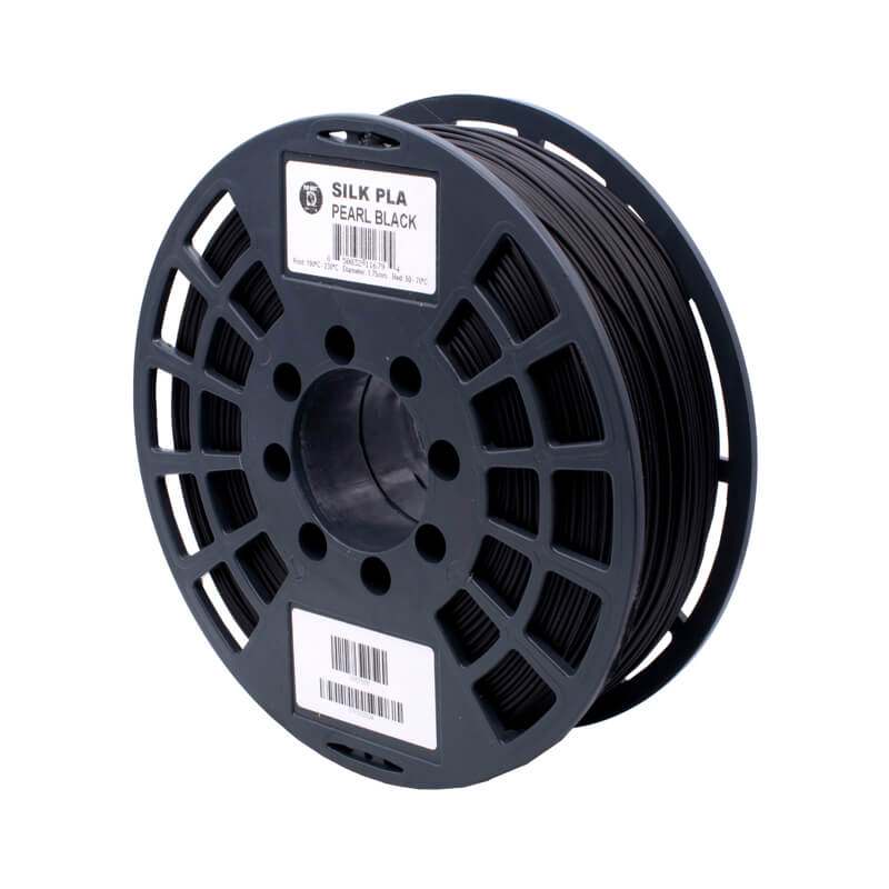 El filamento PLA SILK color negro de la marca IIIDMAX ideal para impresión 3D, su acabado SILK refleja considerablemente la luz permitiendo la fabricación de objetos con un acabado brillante y sedoso, haciendo menos notorias las capas en la pieza impresa.