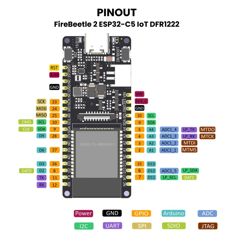 Pines digitales del ESP32-C5, mapeados para Arduino según la FireBeetle. - ADC