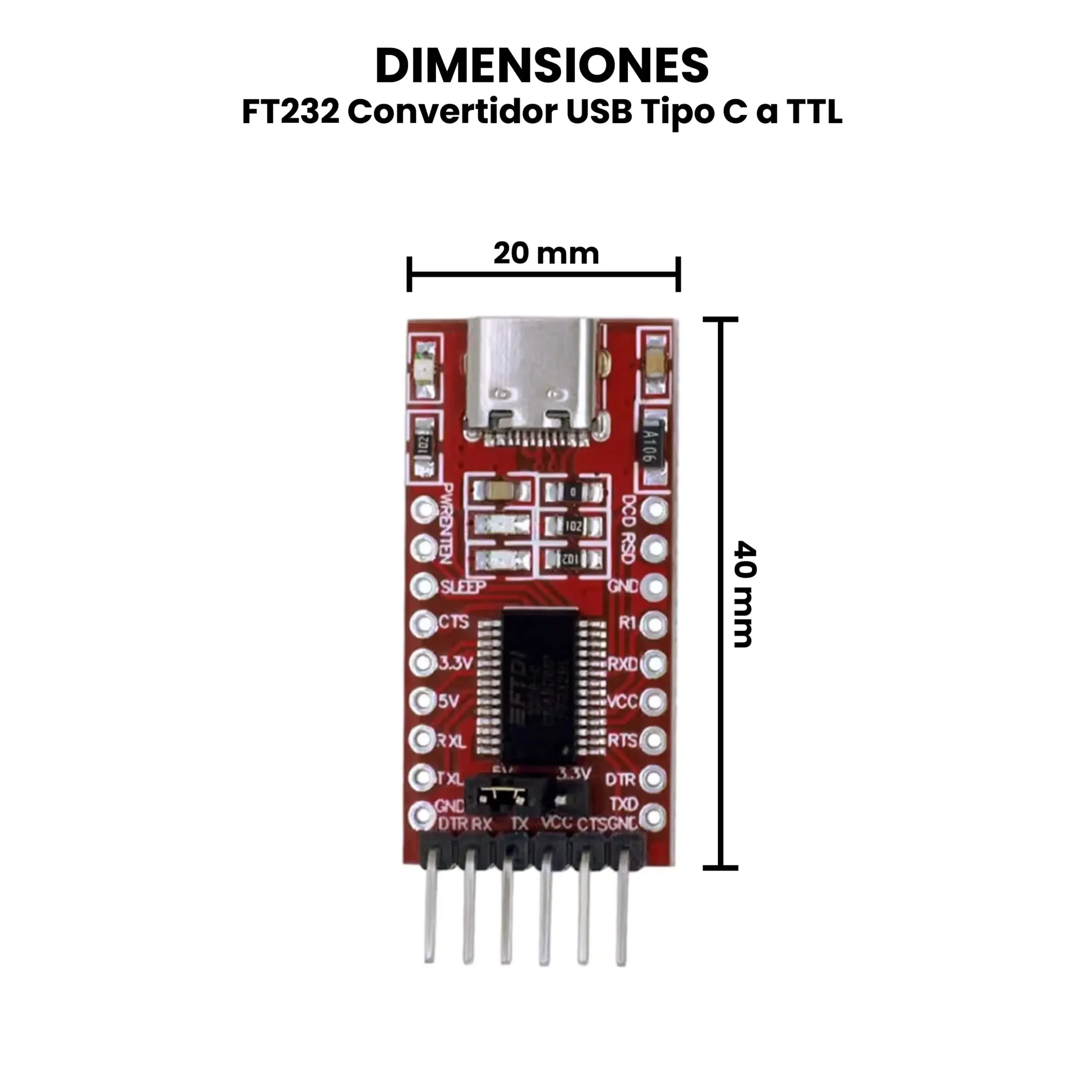 - Tipo: Convertidor USB a TTL.