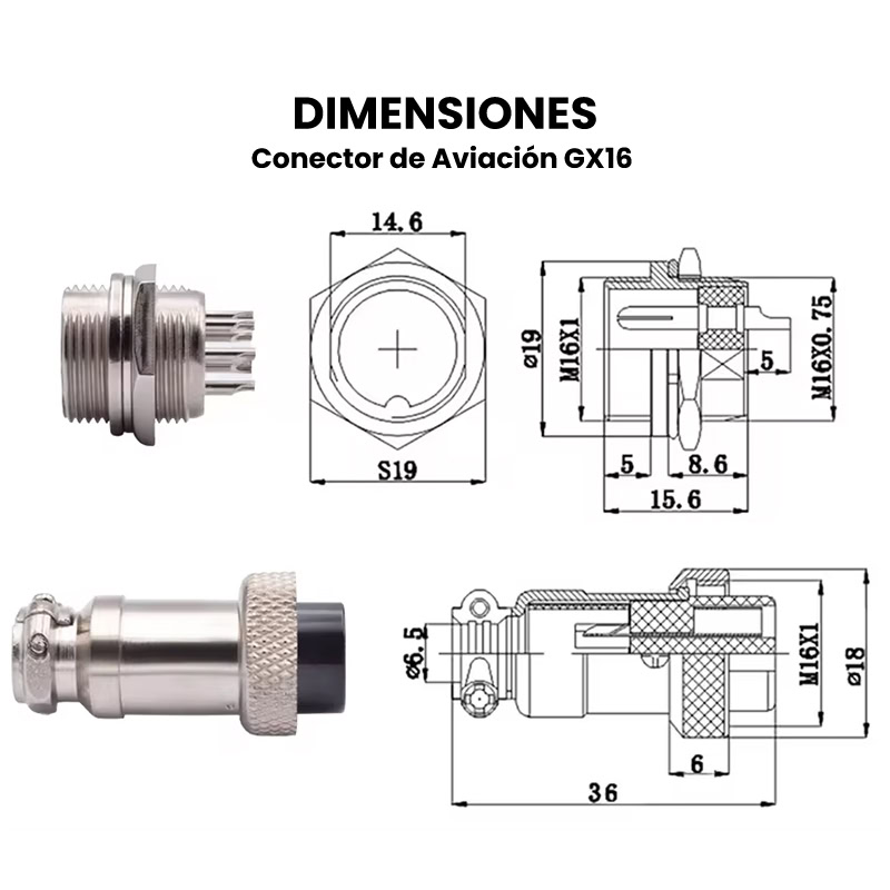Ideales para facilitar la conexión de señales y alimentación en proyectos de robótica, automatización y electrónica DIY. Además los GX16 conectores de aviación cuentan con un mecanismo de bloqueo roscado que garantiza conexiones firmes, siendo resistentes a vibraciones y condiciones adversas, lo que los hace confiables en aplicaciones exigentes.