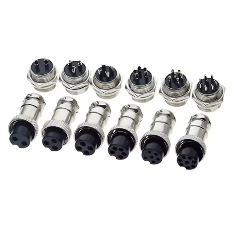 Los GX16 conectores de aviación, son conectores circulares de metal, disponibles en configuraciones de 2 a 8 pines, en par macho y hembra.