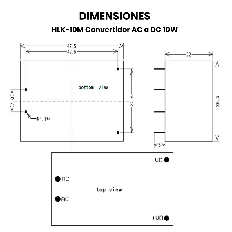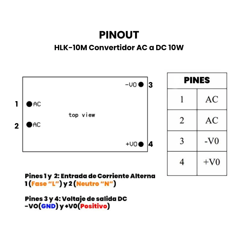 El HLK-10M es un convertidor de voltaje AC a DC de 10W compacto y eficiente, diseñado para transformar corriente alterna de 100 V a 240 V AC en una salida de corriente continua estable. Gracias a su diseño en encapsulado cerrado, resulta ideal para aplicaciones en proyectos de electrónica, automatización, control industrial y sistemas embebidos donde se requiere una fuente de alimentación pequeña y lista para montar en placa o dentro de dispositivos.