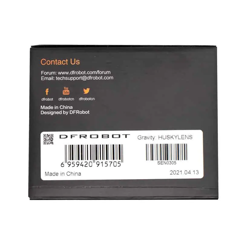 La HuskyLens SEN0305 es una cámara de visión artificial con inteligencia artificial (IA) integrada que permite reconocer rostros, seguir objetos, detectar líneas, códigos QR, colores y etiquetas de forma sencilla. Ideal para proyectos de robótica, automatización y educación, esta cámara se destaca por su facilidad de uso: no requiere conocimientos avanzados de programación, ya que puede configurarse y entrenarse directamente desde su pantalla táctil. Es compatible con placas como Arduino, Raspberry Pi y micro:bit, facilitando la creación de proyectos interactivos e inteligentes.