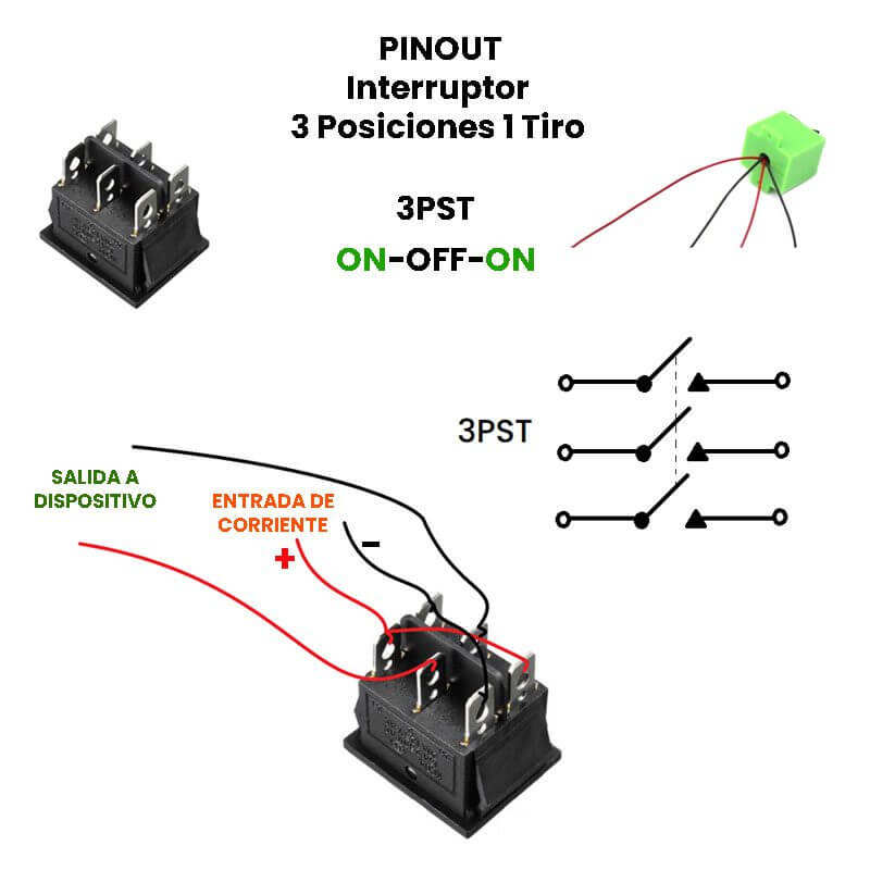 - Tipo de Interruptor: Mecánico ON-OFF-ON