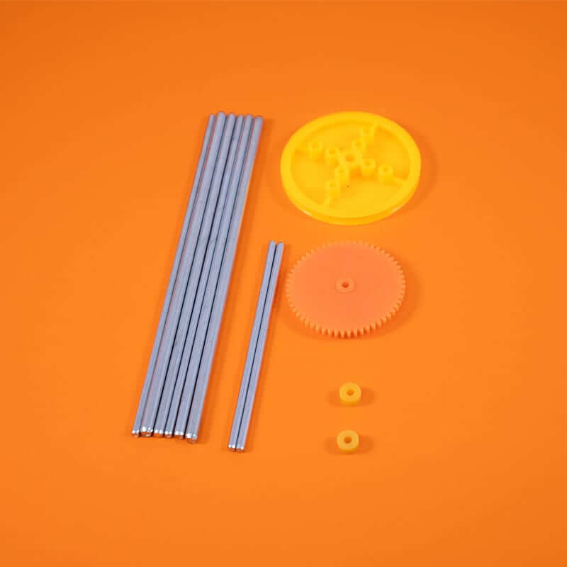 El juego de engranes 92 tipos es un conjunto de engranes de distintos tamaños y formas, además incluye otros elementos para armar estructuras con ayuda de racks, poleas, ruedas, ejes y correas de transmisión. Estos engranes están fabricados en plástico resistente y son ideales para proyectos de mecánica básica y para aplicaciones de baja fricción.