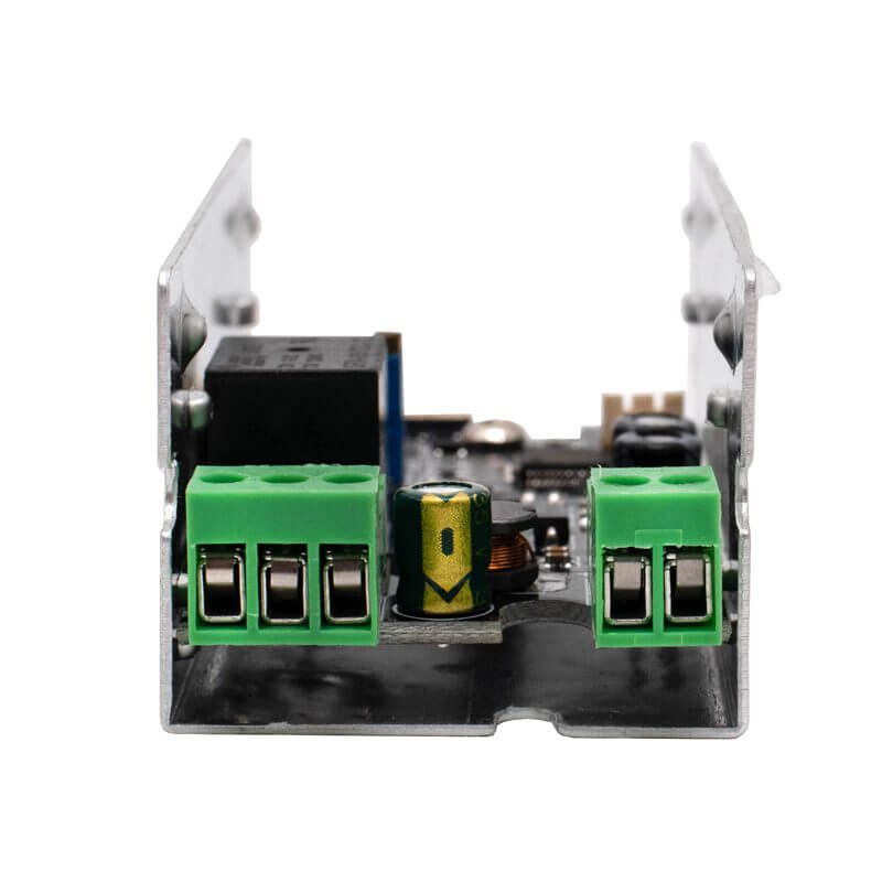 - La placa de control K215 incorpora un relevador que sirve para controlar una cerradura electrónica AC de 125V o chapa DC de 12V con capacidad de corriente de hasta 10A.