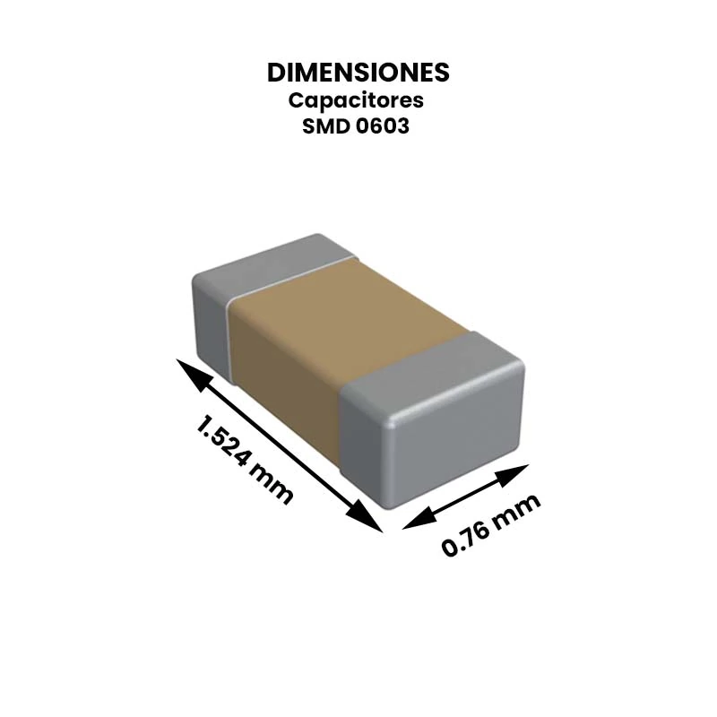 - Pulgadas 0603: 0.06″ × 0.03″ (largo × ancho).