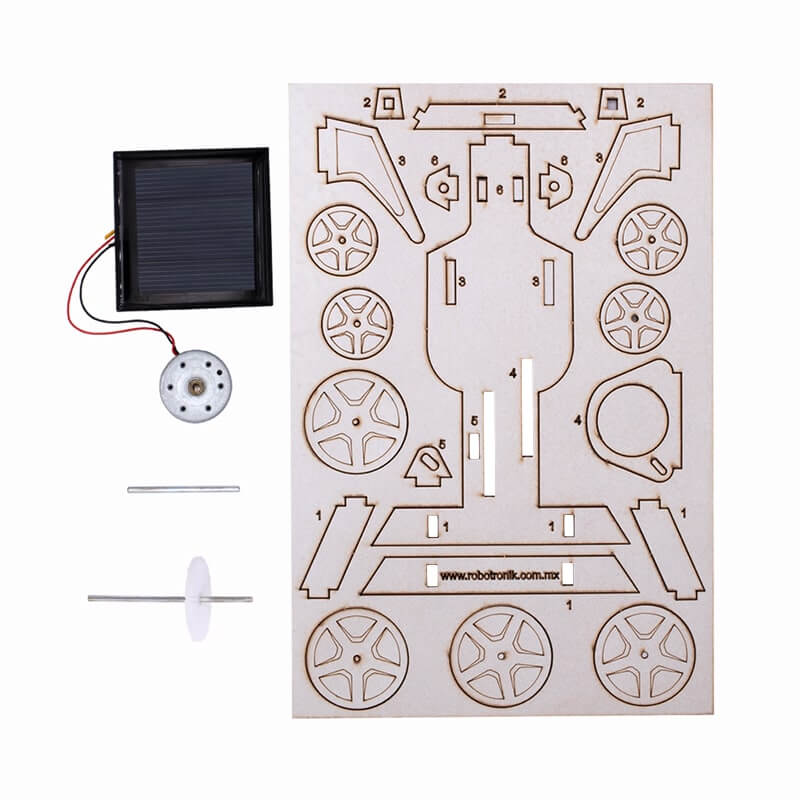 El Kit Carro Solar STEM es un kit que permite construir un carro impulsado por energía solar. Incluye todas las piezas necesarias para su armado y funcionamiento, como:
